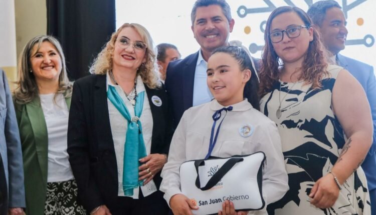 En esta oportunidad, 1.202 estudiantes de 12 escuelas del departamento Albardón recibieron sus netbooks en un acto realizado en la escuela Juan Mantovani.