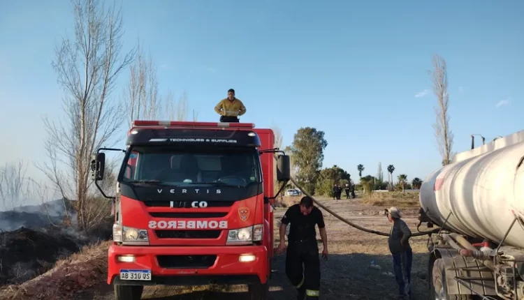Bomberos de Santa Lucía siguen trabajando contra las llamas que iniciaron en un lote pegado al cementerio del lugar, y abarca ya cuatro hectáreas.