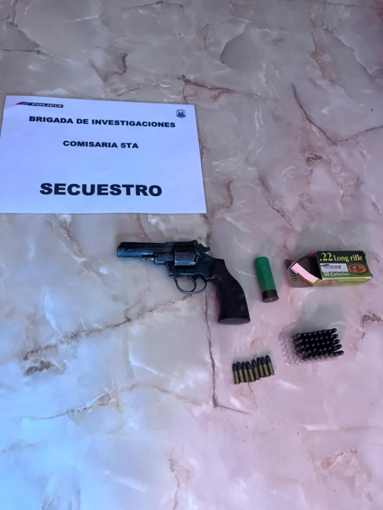 Si bien no se registraron detenciones directas vinculadas al hecho principal, los allanamientos arrojaron resultados relevantes para la causa. En uno de los domicilios inspeccionados, los efectivos secuestraron un arma de fuego cargada junto a una caja con 39 cartuchos adicionales.