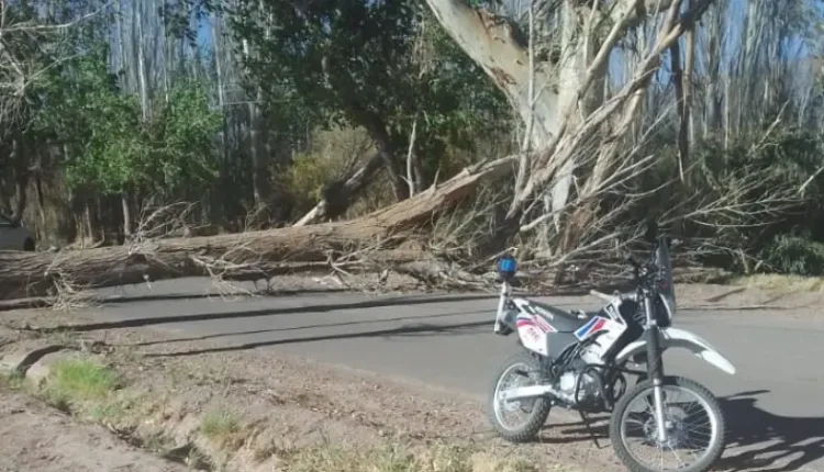 En Tamberías, la intensidad del viento tiró árboles y ramas sobre la calle Ramón Diaz, que atraviesa la zona urbana de la localidad.