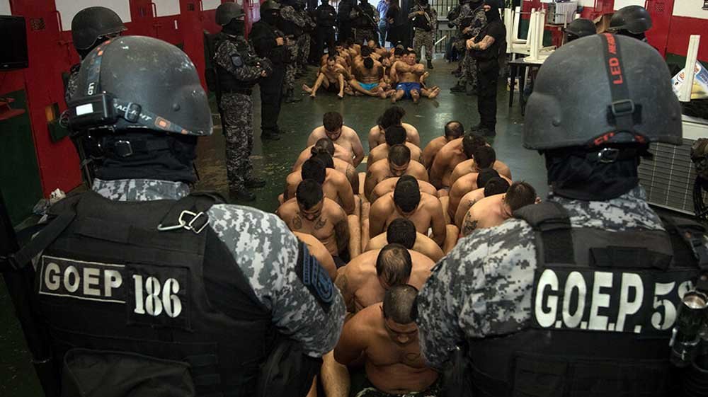 “Cada vez la van a pasar peor”, indicó el mandatario en el posteo, que muestra a grupos de presos sentados en el suelo, sin remeras y fuertemente custodiados. La postal replica el método que utiliza el presidente de El Salvador, Nayib Bukele, para combatir a los pandilleros en su país.