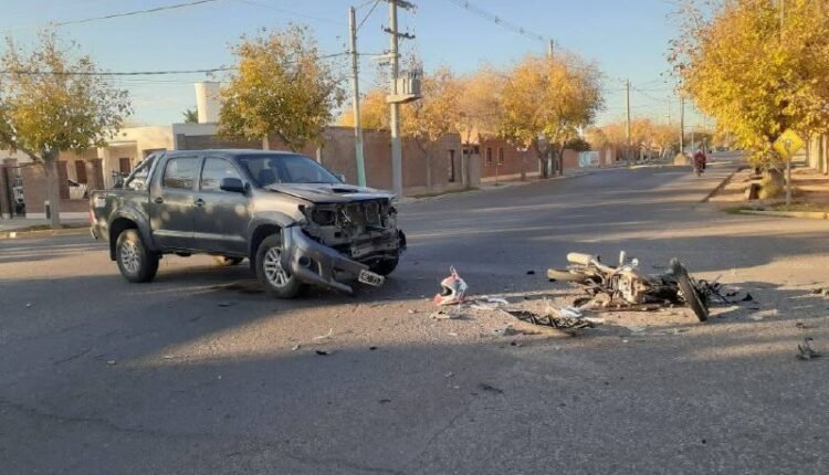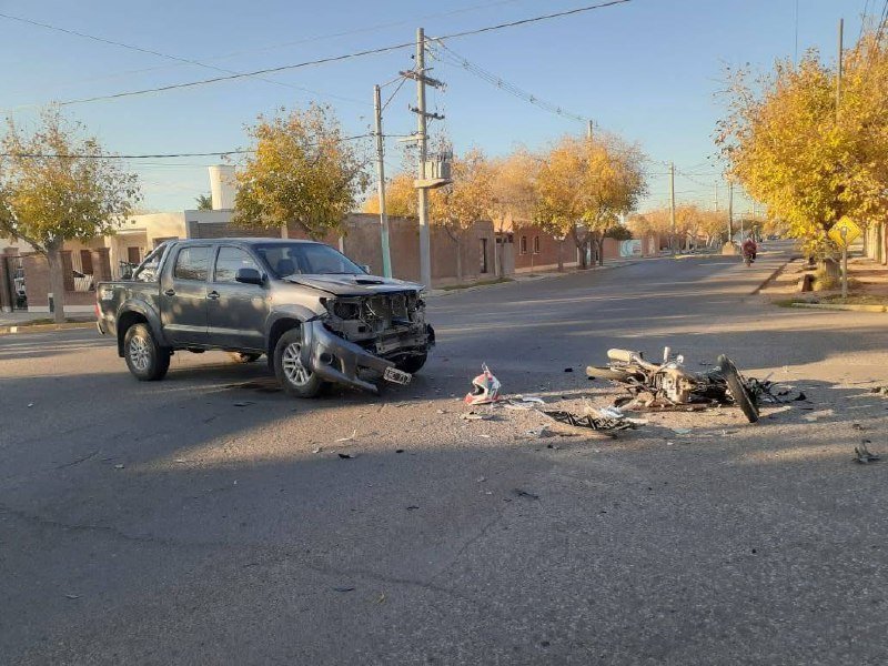 Un violento choque entre una moto y una camioneta terminó con un joven hospitalizado. El siniestro se produjo en el cruce de las calles Rio Bamba y Morales, Capital.