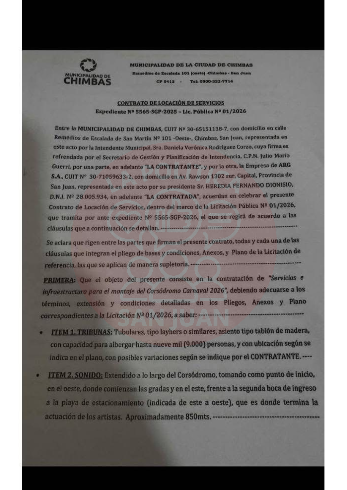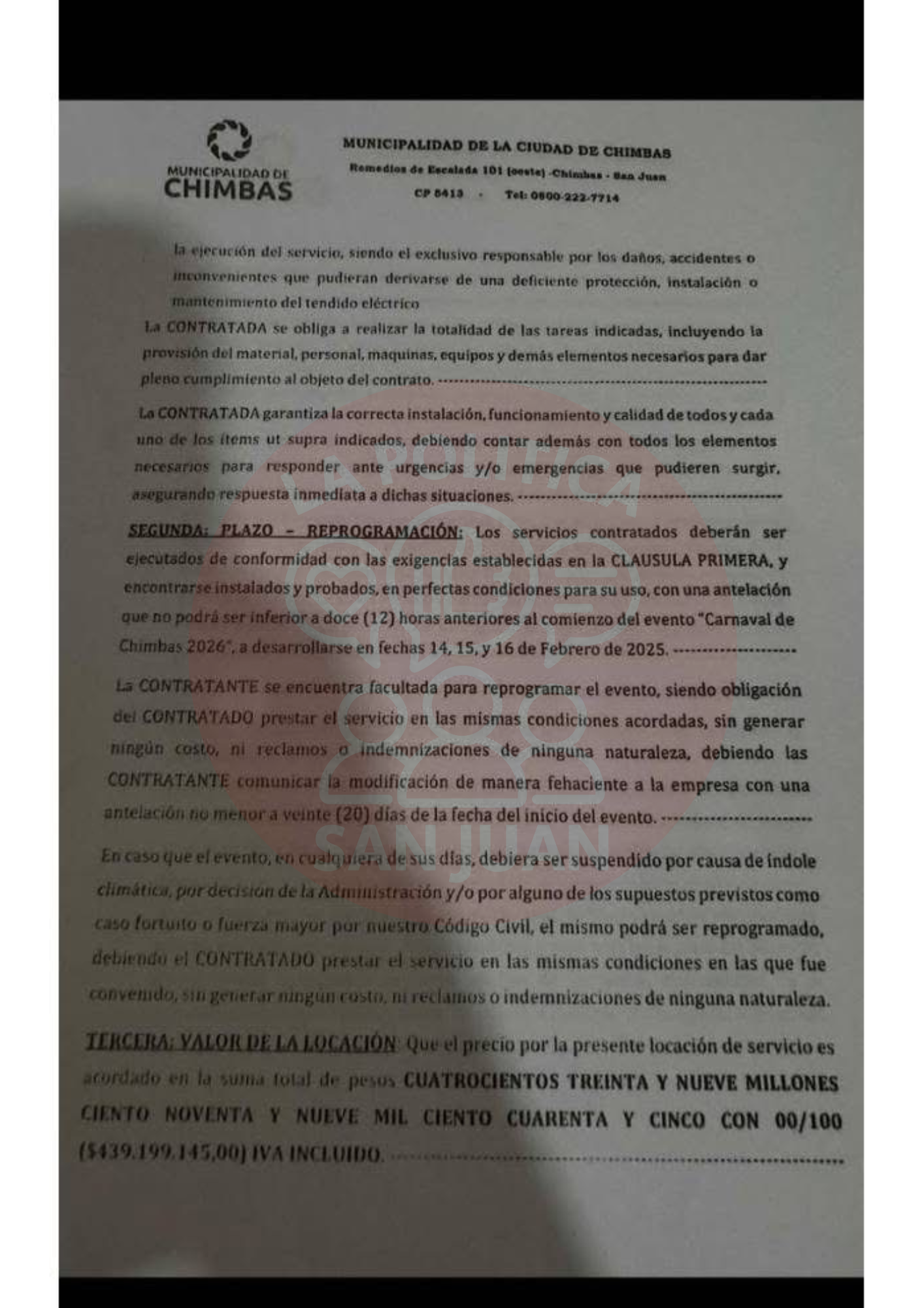 Con el Carnaval de Chimbas 2026 ya finalizado, ahora la atención se trasladó a los números. En las últimas horas salió a la luz el contrato firmado por la Municipalidad para el armado del evento, con un costo que supera los $439 millones.
