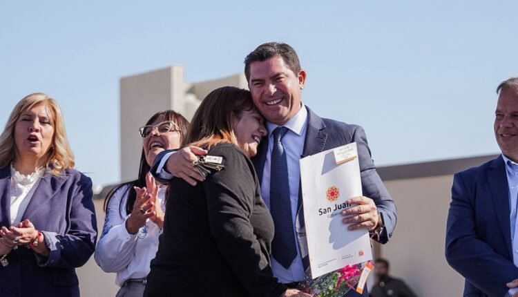 Con el objetivo de seguir construyendo el San Juan del futuro y mejorar la calidad de vida de las familias, el gobernador Marcelo Orrego encabezó el acto de entrega del barrio El Alba, en el departamento Chimbas, donde 46 familias accedieron a su vivienda propia en un entorno urbano completamente equipado.