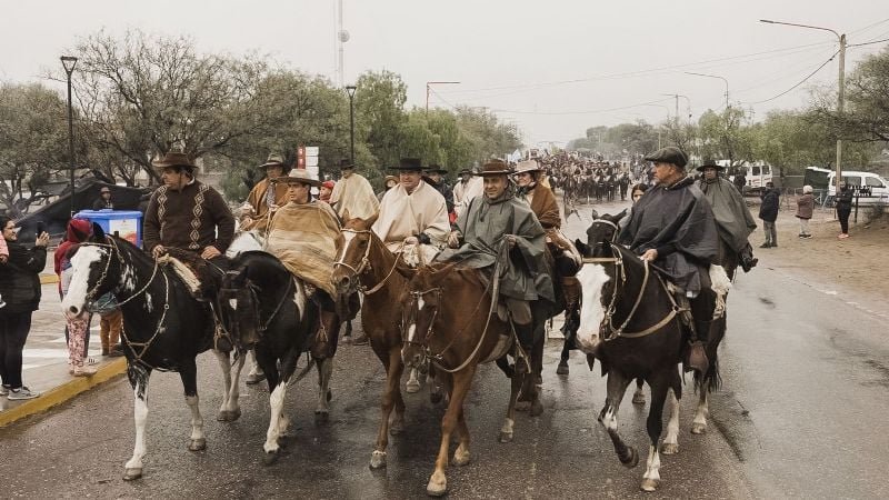 Este sábado al mediodía, más de cuatro mil gauchos y paisanas llegaron al paraje de la Difunta Correa en el contexto de la XXXIII Cabalgata de la Fe. Los jinetes habían partido esta mañana temprano bajo la garúa constante que marcó el camino y que acompañó hasta el final.
