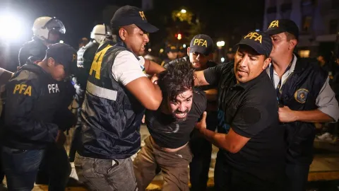 Efectivos de las fuerzas de Seguridad cargaron contra manifestantes y los obligaron a retirarse de las calles adyacentes al Parlamento, en su empeño por hacer cumplir el protocolo antipiquetes que prohíbe la interrupción del tránsito durante las protestas.