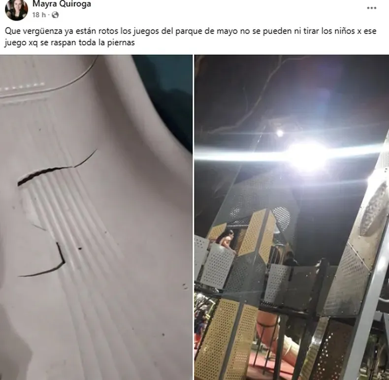 Uno de los flamantes juegos del parque, un tobogán que formaba parte de las nuevas estructuras de juego, fue dañado en su base, aparentemente por una fuerza indebida. Este daño generó sorpresa e indignación entre los sanjuaninos. El tobogán fue inmediatamente marcado con una cinta de peligro para evitar accidentes hasta que pueda ser reparado.