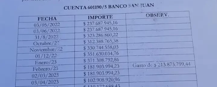 Un nuevo escandalo de indole politico municipal, sacude al departamento de Jachal, tras una denuncia realizada por una concejal de la oposición quien dio cuenta que en enero un fondo creado en el municipio para atender contingencias económicas desapareció en mayo pasado, cuando desde el Area Contable departamental dieron cuenta que esa cuenta estaba en cero pesos al 31 de mayo pasado, cuando en enero incluía más de 371 millones.