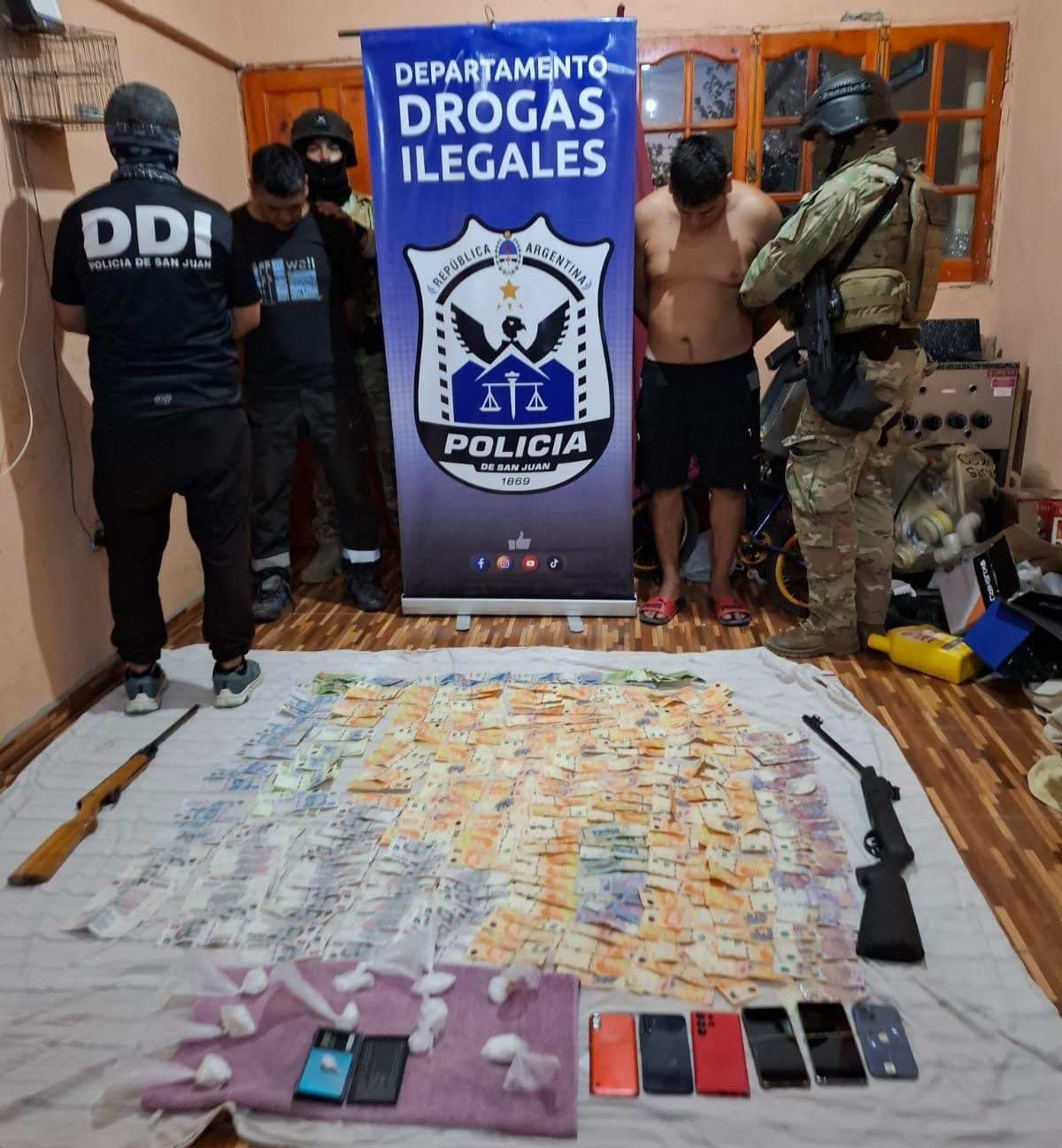 Una investigación policial permitió desbaratar una red dedicada a la venta de cocaína en el departamento Chimbas, tras una serie de allanamientos realizados de manera simultánea en distintos barrios de la zona.