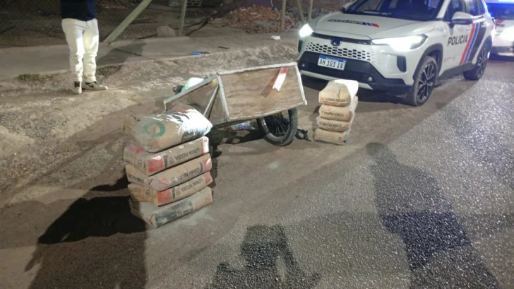 Durante el control, los sospechosos no pudieron justificar la procedencia de nueve bolsas de cemento marca Loma Negra que transportaban, lo que reforzó la hipótesis de un hecho delictivo reciente.