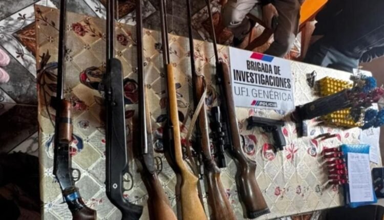 En el lugar fue detenido Eric Omar Olivares, de 41 años. Tras la requisa del domicilio, los uniformados secuestraron un importante arsenal compuesto por dos escopetas calibre 16 sin numeración visible, una carabina calibre 22 marca Marlin, una escopeta calibre 16 marca Centauro, un rifle de aire comprimido con mira telescópica marca Gamo, un aire comprimido marca Norica y una pistola calibre 50 marca Vesta, además de 120 cartuchos calibre 16.