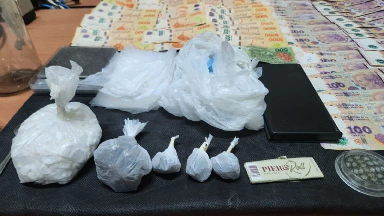 Los análisis de narcóticos confirmaron la presencia de aproximadamente 500 gramos de clorhidrato de cocaína, 250 gramos de marihuana picada, además de 200 mil pesos en efectivo en billetes de alta denominación, una balanza de precisión, elementos de corte, un picador y un teléfono celular.