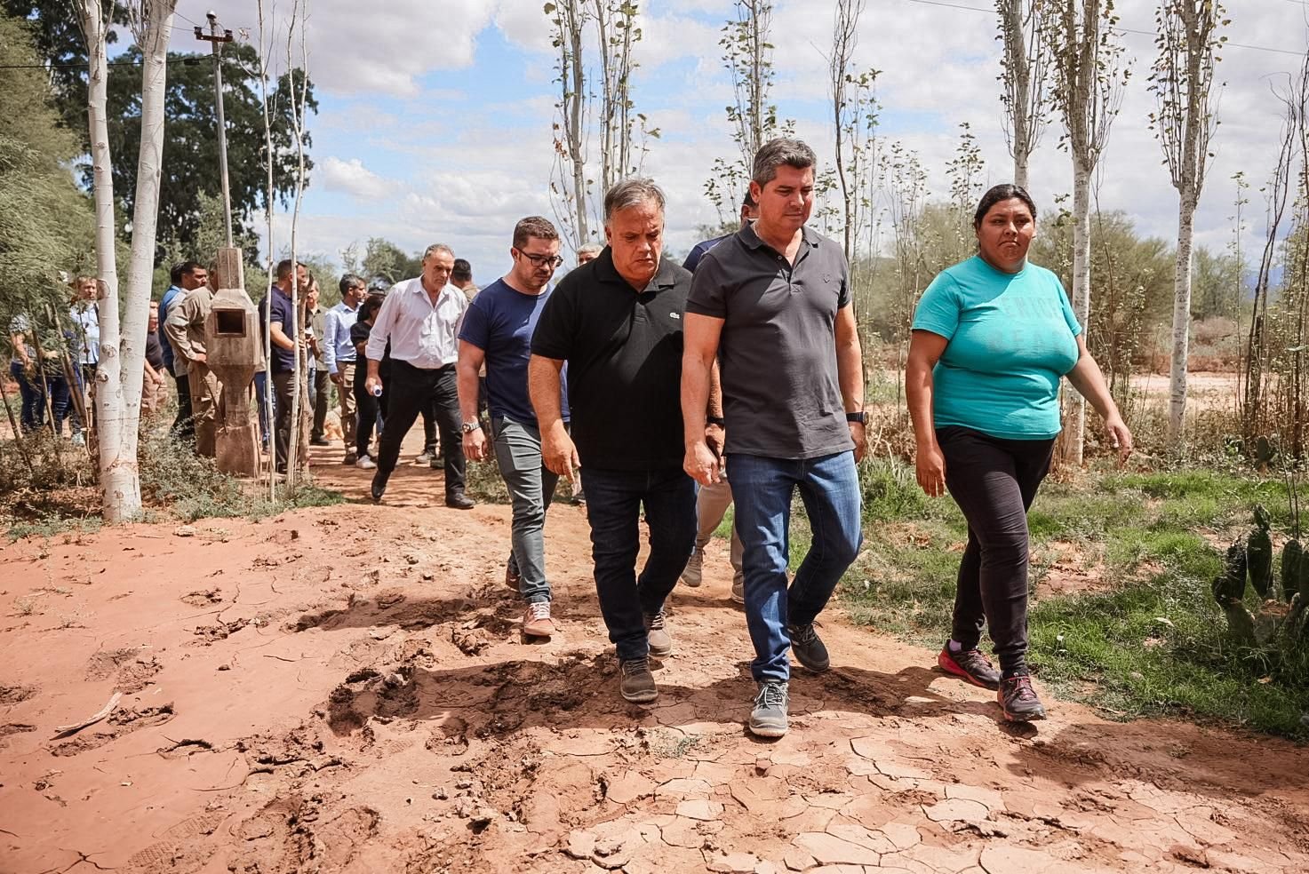 En la recorrida, el mandatario estuvo acompañado por funcionarios del Ministerio de Infraestructura, Hidráulica, OSSE, el Ministerio de Familia y el intendente de Jachal, Matías Espejo, con el objetivo de coordinar las tareas de asistencia y reconstrucción.