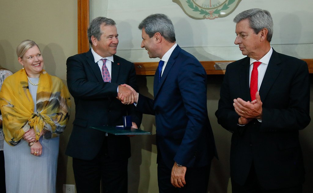 Continuando con la ceremonia, Uñac hizo hincapié en que “es un gran placer recibir hoy al embajador. San Juan tiene estrechas relaciones con el sector económico de Canadá; muchas inversiones de empresas canadienses están radicadas aquí. Es un territorio pequeño, pero que ha diversificado su matriz productiva con energías renovables, turismo, deporte, cultura. Hoy somos la primera en generación de energía solar en el país”.