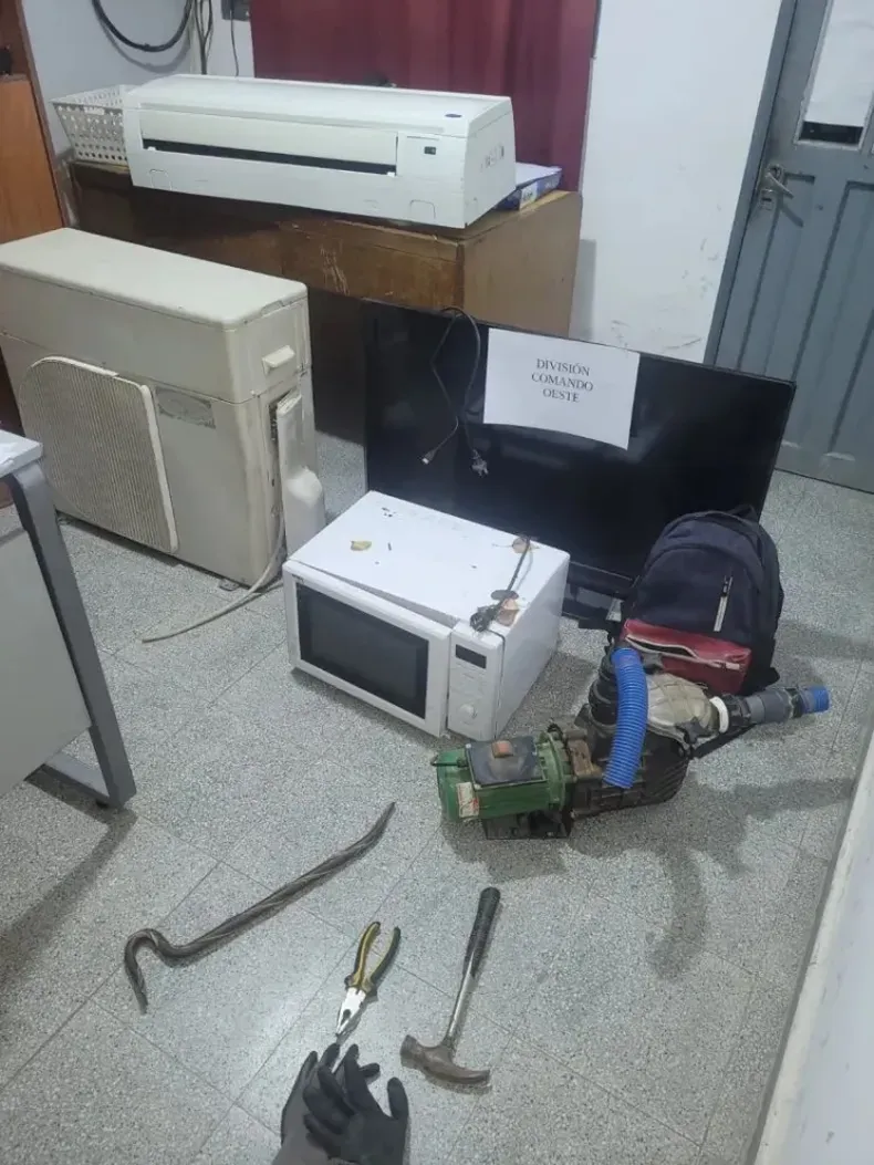 Durante la requisa, los policías encontraron un aire acondicionado Carrier de 6.500 frigorías, un televisor LED de 42 pulgadas, una bomba centrífuga, un microondas, herramientas varias, una segunda bomba de agua y una barrera de hierro. Todos estos objetos habían sido sustraídos minutos antes.