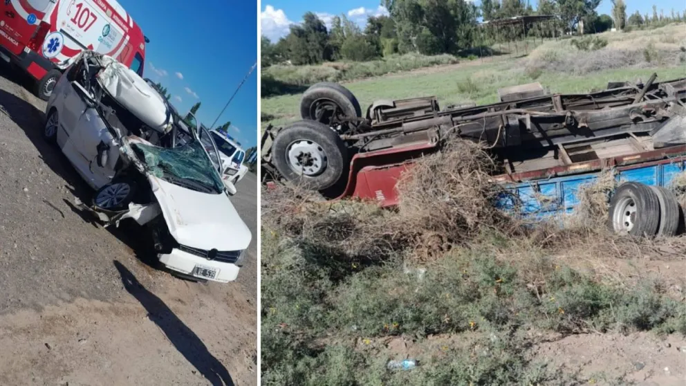 El hecho involucró a un camión Dodge 74 y un automóvil Volkswagen Suran. Por causas que aún se investigan, el vehículo de menor porte impactó desde atrás al camión, lo que provocó que este último terminara volcado al costado de la ruta, dentro de un zanjón.