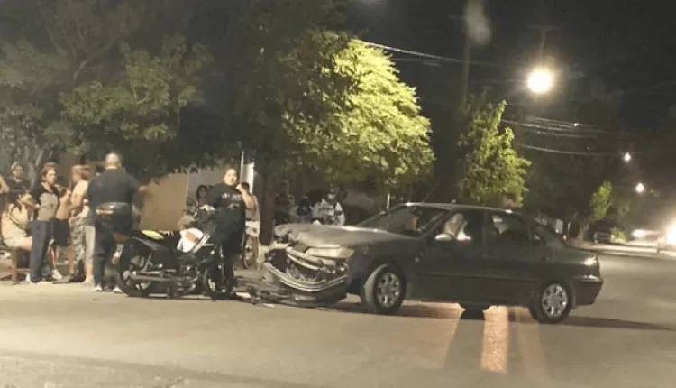 Fuerte choque entre un auto y una moto en Pocito: un joven herido