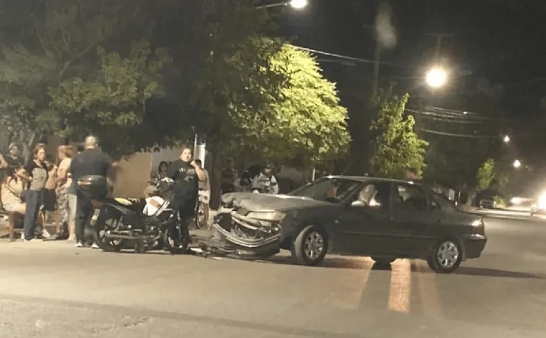 Un accidente de tránsito se registró en la noche de este viernes en Pocito, en la intersección de calle 12 y David Chávez, donde colisionaron un automóvil y una motocicleta.