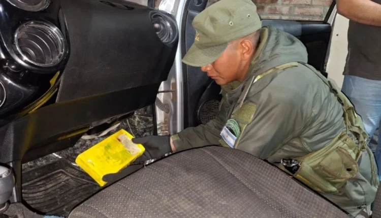 Durante la inspección del vehículo, con el apoyo de un can detector de narcóticos, los gendarmes hallaron un paquete oculto en el sistema de aire, debajo de la guantera. La sustancia fue sometida a una prueba de orientación química, que confirmó que se trataba de cocaína.