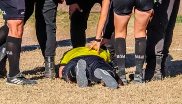Lejos de calmarse, la situación escaló cuando varios jugadores del equipo se sumaron a la agresión: empujaron al juez, lo tiraron al suelo y le propinaron golpes de puño y patadas.