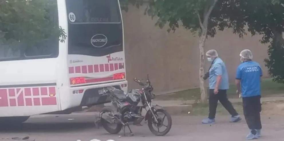 Fuentes policiales confirmaron a 0264 Noticias que el hecho se produjo cuando un colectivo de la línea 407 de la empresa Albardón, conducido por un hombre que circulaba por calle Bence de sur a norte, impactó contra una motocicleta que transitaba por calle Saúl Quiroga.