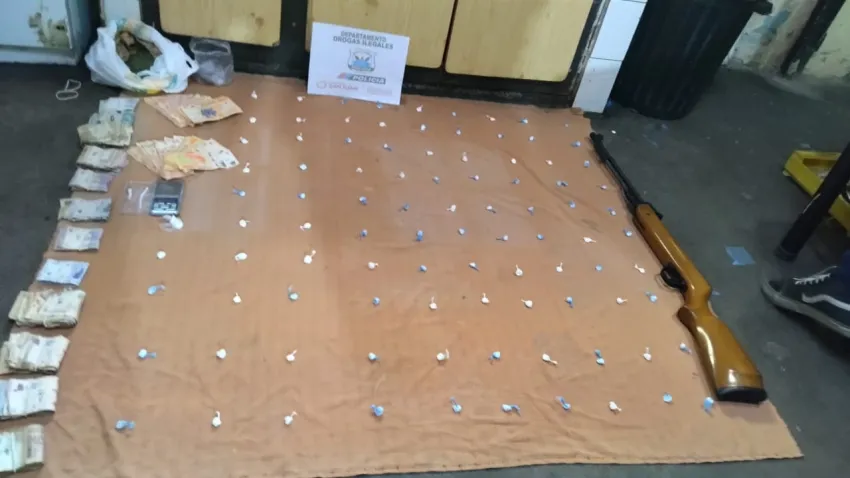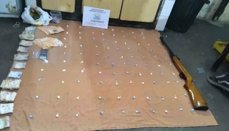 Este martes, desde la fuerza explicaron que encontraron las dosis de cocaína, picadura de marihuana, los elementos para fraccionarlas, el dinero y un rifle calibre 22 con municiones.