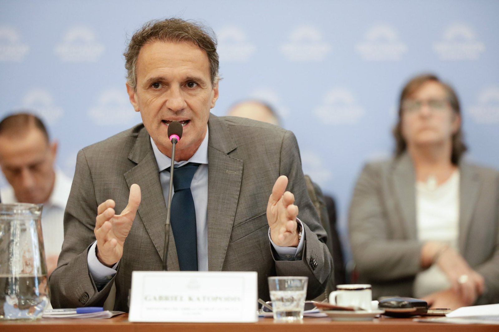 El ministro Gabriel Katopodis en las oficinas de Noticias Argentinas. Foto: NA/Daniel Vides.