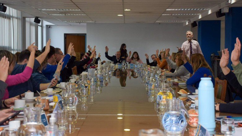 Con las manos en alto, el cuerpo aprobó la iniciativa y saludó con fuertes aplausos la creación de la nueva carrera.