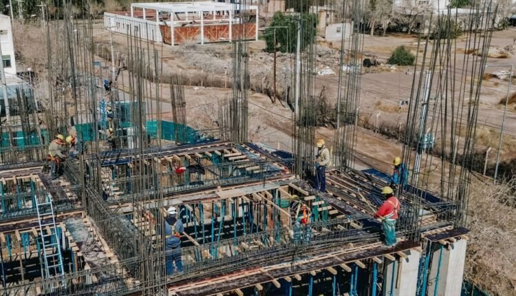 El proyecto contempla una superficie total de 3.393,95 m², distribuidos en cuatro niveles: subsuelo, planta baja y dos pisos superiores. Ya se completaron las estructuras de planta baja y primer piso, y se trabaja en el segundo nivel y el hormigonado de losas y vigas en el subsuelo, donde estarán las salas de máquinas y servicios técnicos.
