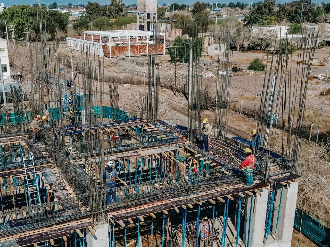 La obra, financiada íntegramente con fondos provinciales, supera actualmente el 30 % de avance. Se ejecutan tareas de obra gruesa correspondientes a la estructura principal —columnas, vigas, losas y muros portantes—, mientras que en los sectores más adelantados se trabaja en las instalaciones eléctricas, sanitarias, de gas y especiales, esenciales para su funcionamiento.