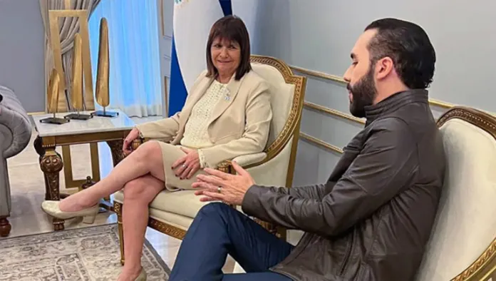 La Ministra de Seguridad de la Nación, Patricia Bullrich, se reunió este martes con el Presidente de El Salvador, Nayib Bukele, en un encuentro en el que ambos resaltaron y coincidieron positivamente en las políticas que implementó el gobierno de ese país para bajar los niveles de criminalidad.