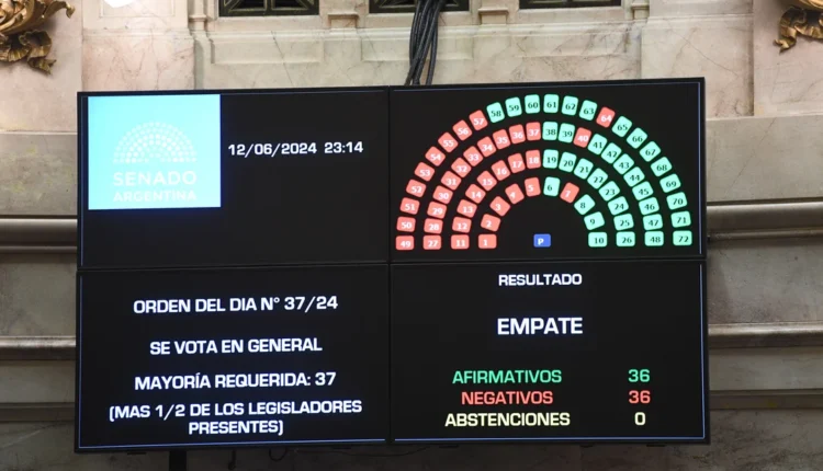 El Senado Ley de Bases aprobó este miércoles por la noche la ley de Bases en general con 37 votos positivos contra 36 negativos, tras el desempate propinado por vicepresidenta de la Nación y titular del cuerpo, Victoria Villarruel, en medio de un clima de tensión dentro y fuera del recinto.