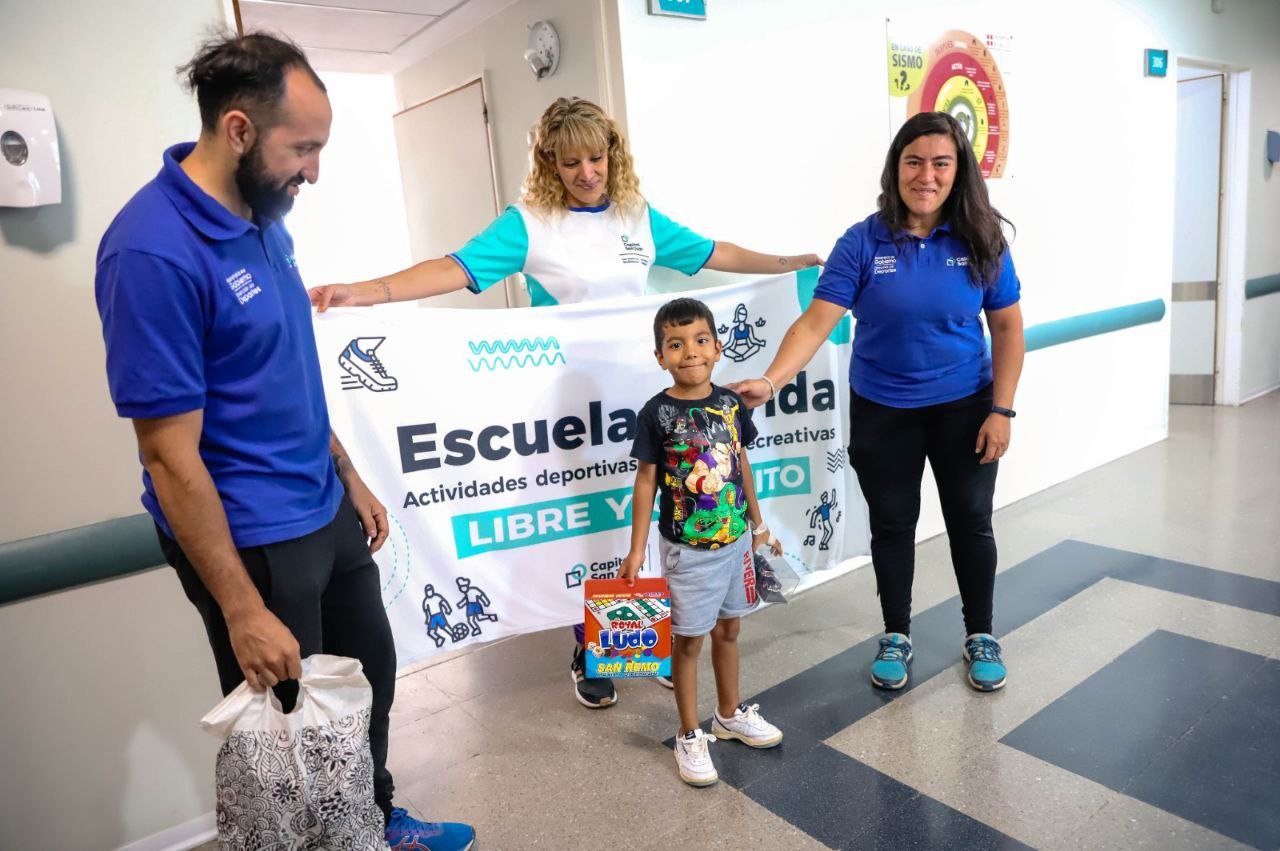 Los niños y niñas que se encuentran internados en este nosocomio recibieron de parte de los profes de la Dirección de Deportes los juguetes que servirán como distracción para cada pequeño. Pacientes, familiares, personal del hospital y profesores vivieron una emotiva mañana y, a la vez, llevaron diversión a la sala que alberga a los más pequeños.