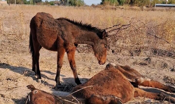 Además, una yegua madre debió ser sacrificada debido a su grave estado de maltrato, desnutrición y abandono. En paralelo, fueron hallados cinco cachorros encerrados en un gallinero, con heridas en sus patas, hongos en la piel y obligados a alimentarse de sus propias heces.