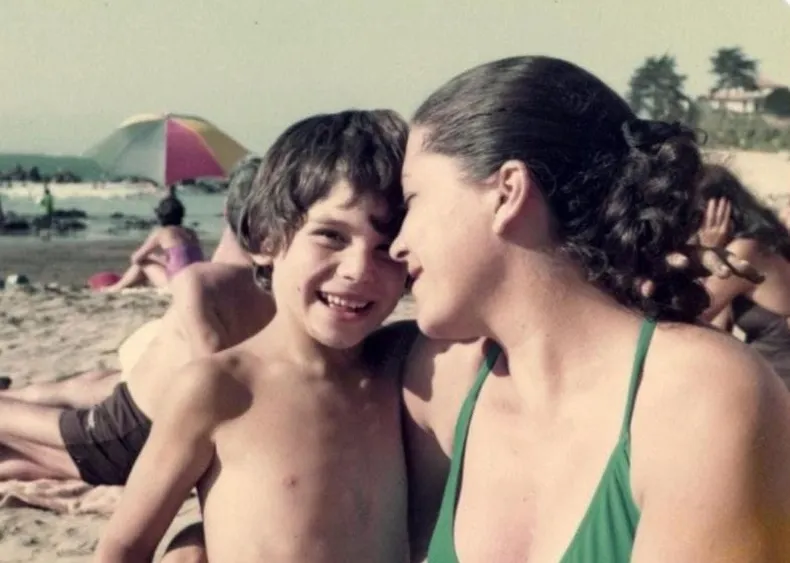 «Todos los 7 de julio te recuerdo con la dulzura que transmitías, la nobleza y la entrega con la que ejerciste tu profesión y, sobre todo, con el amor de madre que nos diste a mí y a mis hermanos», escribió Orrego como pie de la imagen en la que se lo observa de niño en la falda de su madre, en una playa.