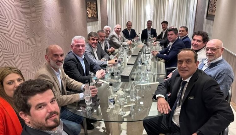 Marcelo Orrego, gobernador electo de San Juan, junto a uno de sus hombres de confianza, el candidato a senador Emilio Achem, se reunió con dirigentes de la Cámara Argentina de Empresarios Mineros para intercambiar información y distintos aspectos de la actualidad del sector a nivel nacional y de lo que se viene en San Juan a partir del próximo 10 de diciembre.
