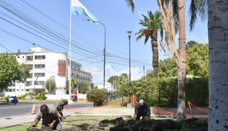 El parquizado de la plazoleta había sufrido un gran deterioro debido a las altas temperaturas registradas en la provincia, es por ello que se necesitó trabajar en la regulación y recambio de los aspersores. Se pretende así, mejorar la efectividad del sistema de riego. A la vez, se llevó a cabo la erradicación de 2 higueras y 1 siempre verde, que se encontraban en mal estado y se concretó la poda de altura de las palmeras ubicadas en la zona de calle Libertador.