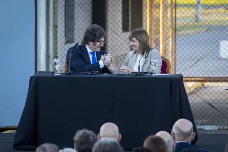 Acompañado por la ministra de Seguridad, Patricia Bullrich, Milei afirmó que la Argentina necesita “que los juicios se hagan rápido y los delincuentes cumplan la condena donde corresponde, en la cárcel”.