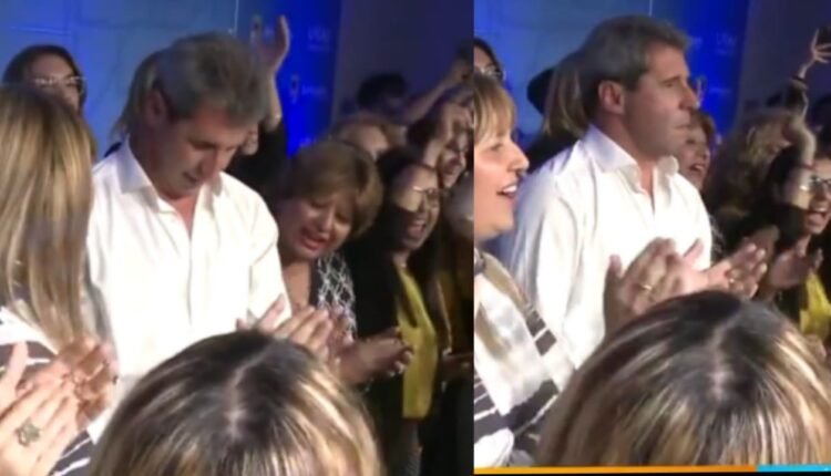 Mientras el mandatario se encontraba en un acto con mujeres militantes y la algarabía reinaba al ritmo de «ole ole, ole ola, las elecciones vamos a ganar», uno de sus custodios personales debió irrumpir entre medio y acercarle el celular, el cual inmediatamente agarró y leyó atentamente.