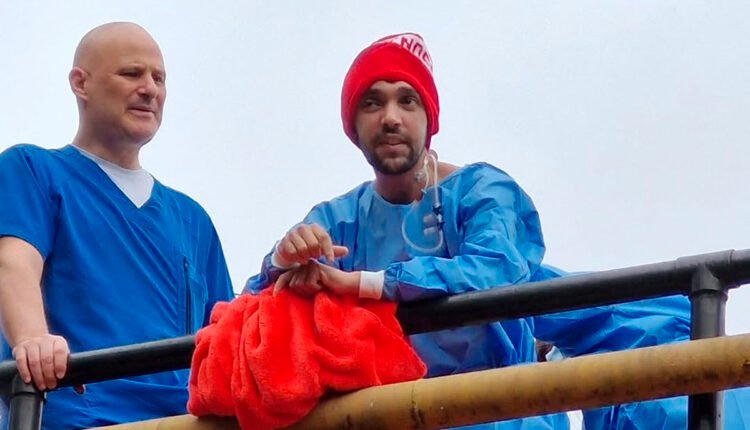 Dos meses después, el reportero gráfico salió a tomar aire al balcón del Hospital Ramos Mejía acompañado por su padre, Fabián Grillo, y el personal del centro médico que lo cuidaba.