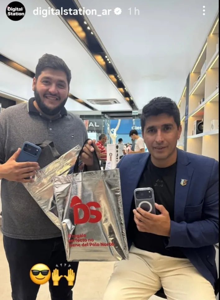 La foto que muestra al intendente de Calingasta, Sebastián Carbajal, junto a su sobrino Enzo Luna, tras comprar dos iPhone 17 Pro Max se volvió viral y generó una fuerte polémica en el departamento. Según el periodista Jairo Rojas, en su programa Mañanas Campestres de Radio del Valle, los equipos tienen un valor aproximado de 2,5 millones de pesos cada uno, por lo que la inversión de Carbajal rondaría los 5 millones.