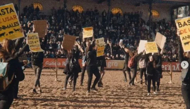 Otra vez, en el marco de la Expo Rural, en la pista central de La Rural, en Buenos Aires, un grupo de veganos y proteccionistas de animales irrumpió para manifestarse. Ocurrió en la tarde de este sábado, mientras se realizaba un concurso de equinos.