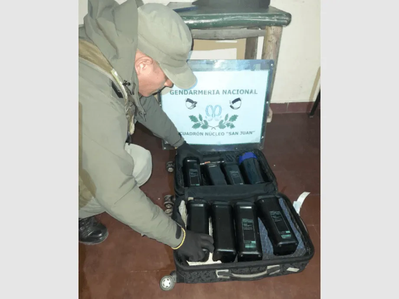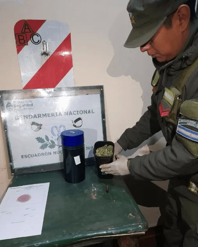 En una valija venían acomodados los 9 frascos plásticos de color negro que tenían la droga en su interior. Tras un pesaje, los gendarmes descubrieron que se trataba de un total de 837 gramos de marihuana.