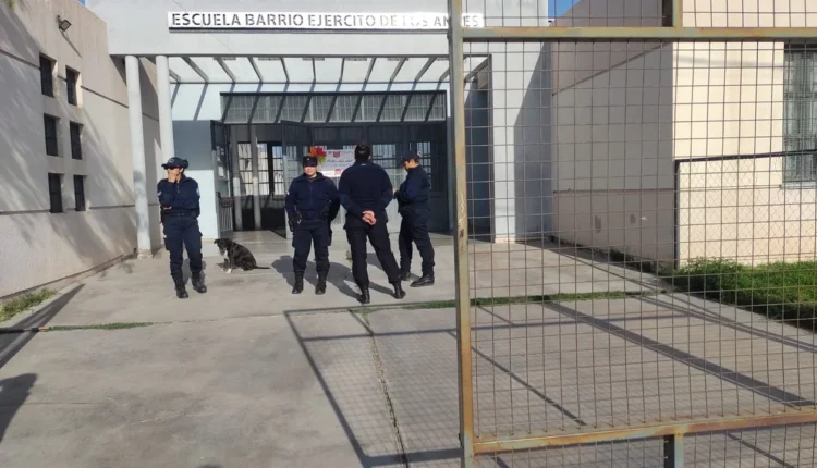 En el lugar trabajaron efectivos policiales junto a las divisiones especializadas para descartar la presencia de un artefacto explosivo y garantizar la seguridad de la comunidad educativa.