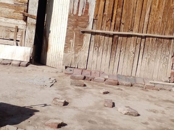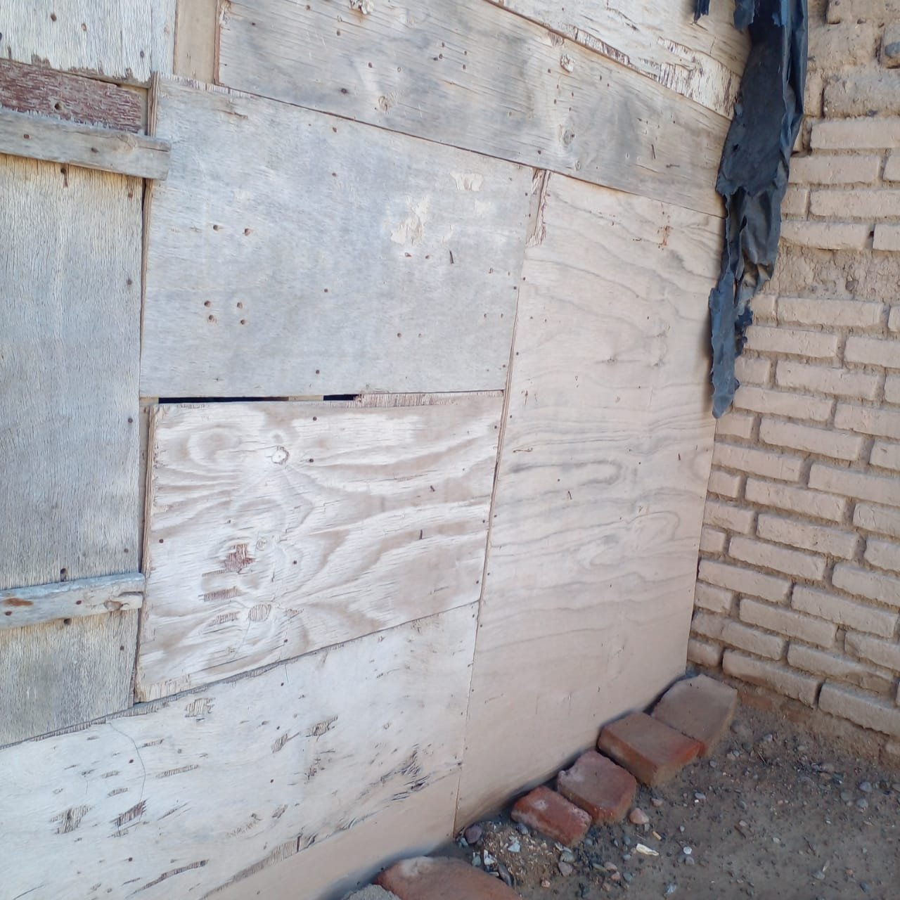 El obrador, donde actualmente vive Nelly, esta compuesto de dos piezas, una de block y otra de ladrillos pegados con barro, junto con un pequeño comedor – galería cerrado con chapas y también apuntalados.