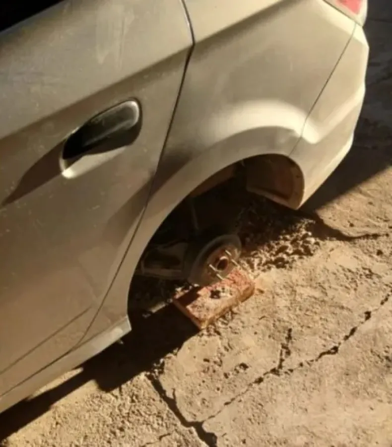 Según la denuncia, le habían sustraído una rueda, la batería —con los cables cortados— y varios elementos del interior del vehículo estaban completamente revueltos.