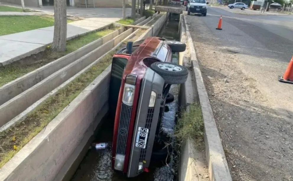 Un impactante accidente se produjo esta mañana en inmediaciones del club Unión Vecinal de Trinidad, en el departamento Capital. Es que, sobre calle Villagra, un hombre manejaba Volkswagen Gol, el cual se lo había prestado un amigo, terminó en un canal de riego, luego que, según manifestó, se le cruzaran unos perros en plena calle.
