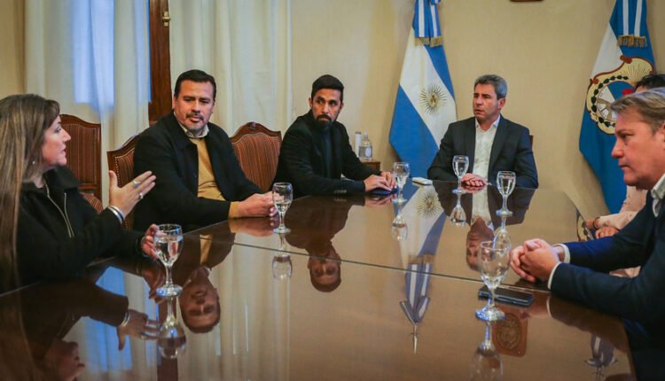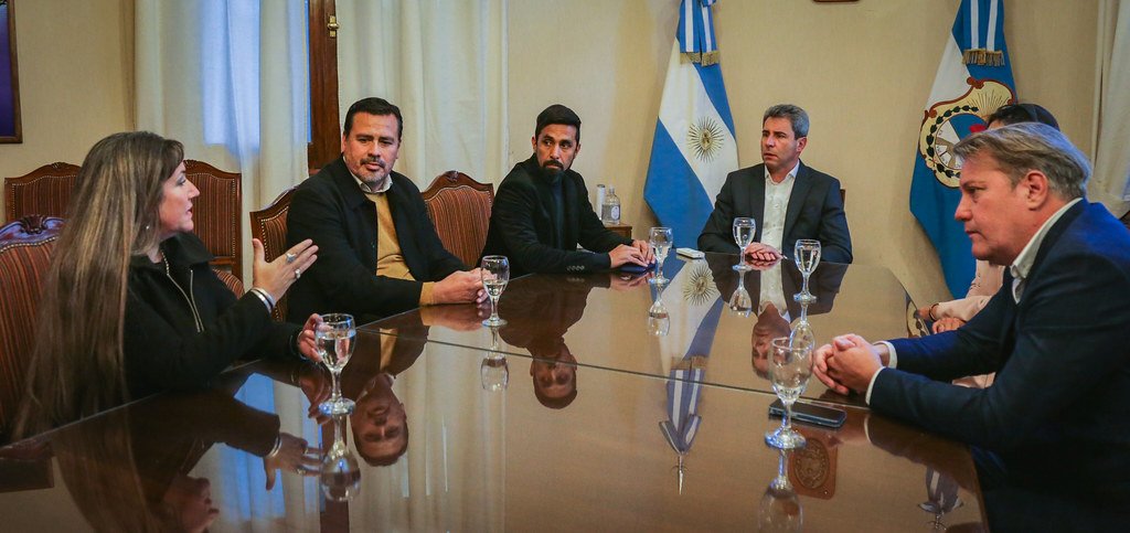 En la sala Eloy Camus de Casa de Gobierno el mandatario mantuvo un encuentro con la Cámara de Comercio agroindustrial y turismo de Rawson, Gastón Villor; Cámara de Comercio, Industria y Servicios de 25 de Mayo, Analía Herrerías; Cámara de Comerciantes Unidos, Marcelo Quiroga; Cámara de Mujeres Empresarias y Emprendedoras, Flavia Barragán.