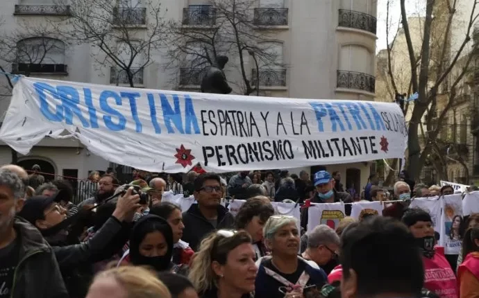 Manifestantes derribaron el vallado montado por la Policía de la Ciudad en la esquina de Juncal y Uruguay, frente a la residencia de la vicepresidenta, Cristina Kirchner, tras lo cual la fuerza de seguridad reprimió con gases lacrimógenos y carros hidrantes para intentar disuadir.