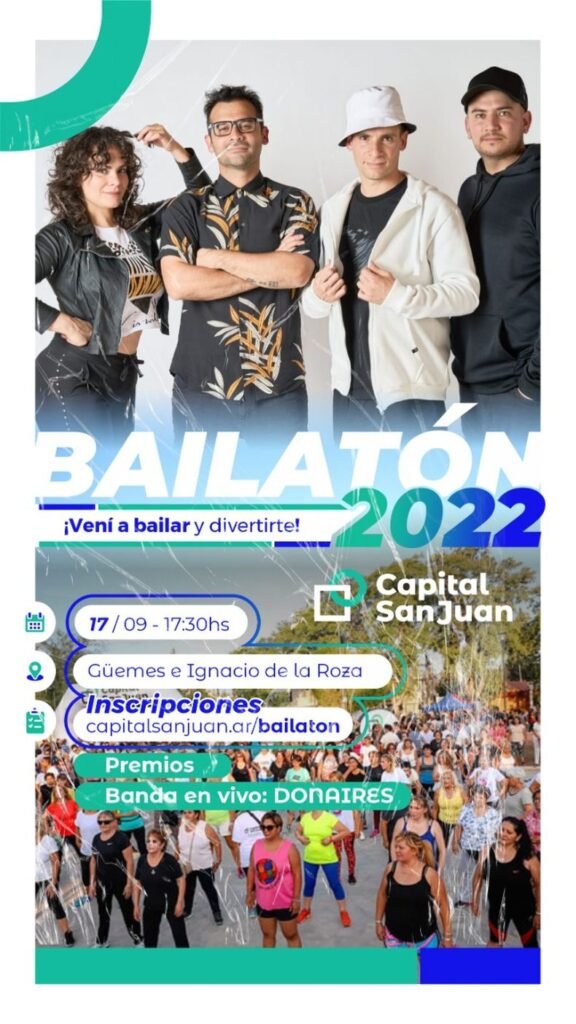 Más de 40 profesores de en la capital sanjuanina se prendieron al Bailatón Capital Activa 2022. Este sábado se vivirá una tarde a puro baile desde las 17.00 en el cruce de calles Ignacio de la Roza y Güemes. La propuesta es abierta a todo el que quiera participar, gratuitamente.